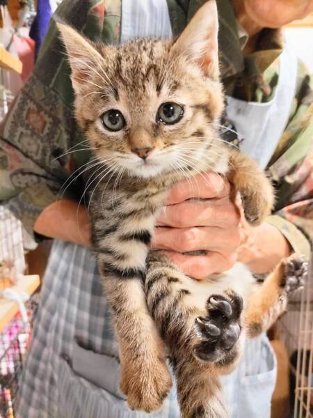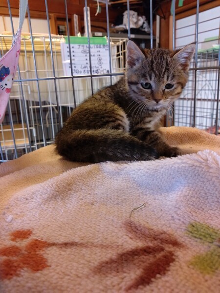 | 特徴(性格など) | キジトラ柄でお目目がクリッとしています。 人にも直ぐに慣れて抱っこもできます。 トイレもきちんと決まった場所で出来ます。 虫落としは終わりましたが、ワクチン接種は近日行います。 |