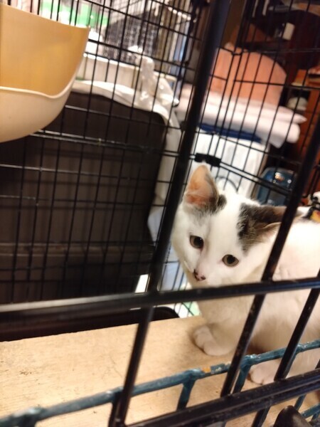 | 特徴(性格など) | 白に両耳と背中に黒の柄があります。 人間大好きで、かまってほしくて近くに行くとすり寄ってきます。 トイレはきちんと決まった場所で出来ます。 ご飯もレトルトとカリカリどちらも食べます。 |