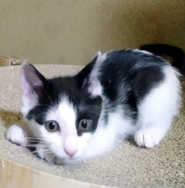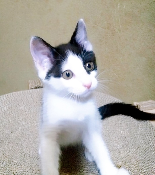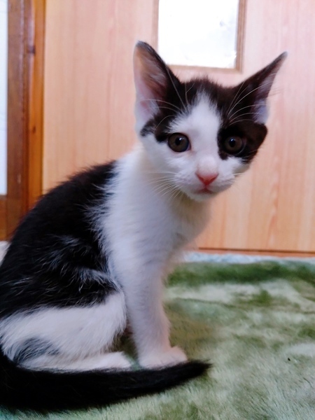 | 特徴(性格など) | 左目に黒模様があるハチワレちゃんです。 尻尾も長くて美猫です。 他の猫と仲良くして、よく遊んでいます。 今回、募集中の姉妹猫のパンダ模様の女の子より、少しツンデレなようです。 離乳食を少しずつ分けて食べさせています。 健康状態は二姉妹、共々、良好です。 トイレはちょっと苦手みたいですが、 何とかトイレをしてくれます。 |