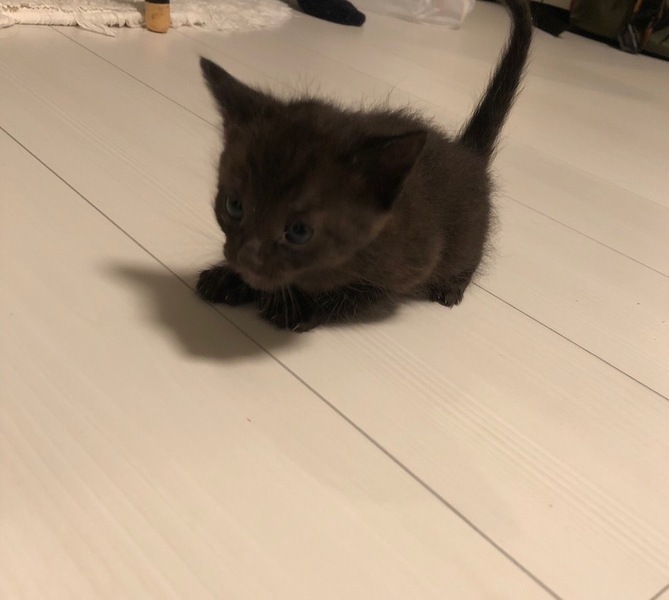 | 特徴(性格など) | 黒猫ちゃんで喉仏部分一点だけ白いです パッと見た目黒ですがよく見ると虎柄がまじってカッコイイ男の子です。 |