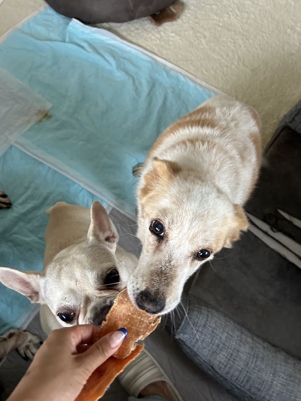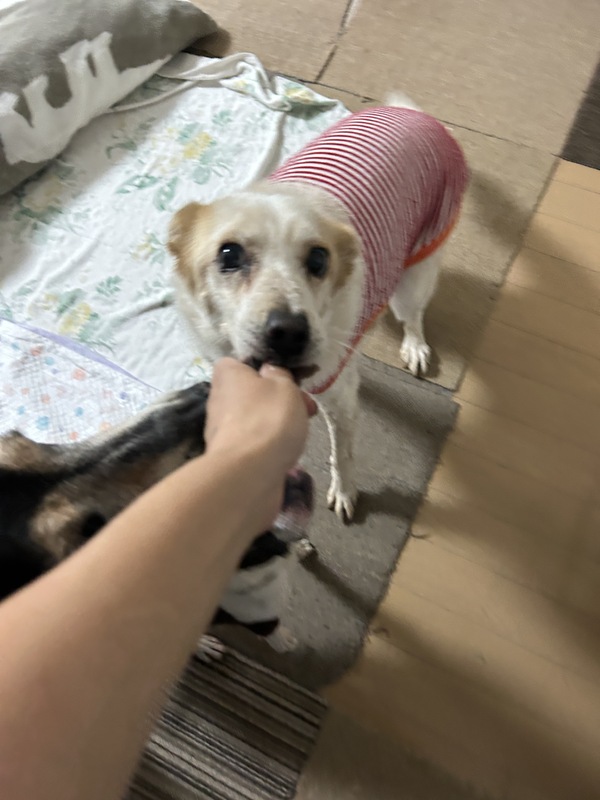 | 特徴(性格など) | 名前:もなか 犬種:Mix 性別:メス♀ 毛色:白薄茶色 年齢:12歳ぐらい 体重:10.2kgくらい 性格:とても穏やかで、人にも犬にも優しい子です。 人にはちょっと慣れるのは時間がかかりますが、結構早くに確実に慣れます(^^) ドッグランでも、知らない人に「撫でてー」と背中向けるほどに慣れてきてます。 犬にはしつこかったりすると、唸ったりしますが、今まで口は出したことはないです。 嫌だったら唸りながら逃げるので、喧嘩にはならないです。 散歩は引っ張らずに、ルンルン楽しそうに歩きます。 お散歩は好きです。 トイレは、基本的には外でします。 1日2〜3回の散歩で外でしたら、家の中ではほぼしないです。 レスキュー前は排泄がしたい時にできなくて膀胱炎っぽくなっていたので、がまんはさせないようにしています。 |