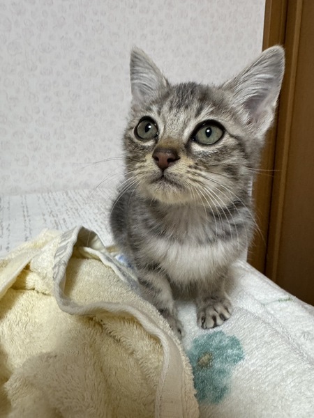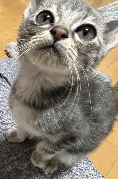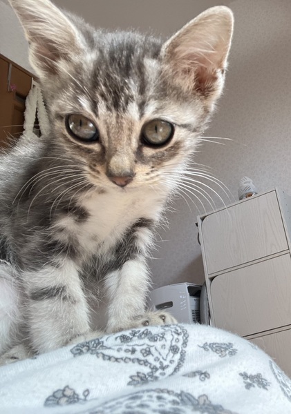| 特徴(性格など) | アメショっぽい柄の女の子です。 甘えん坊でよく膝の上にのってきます。 おとなしい性格です。 ご飯もよく食べお水もしっかり飲んでいます。 トイレも覚えています。 |