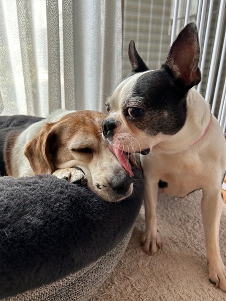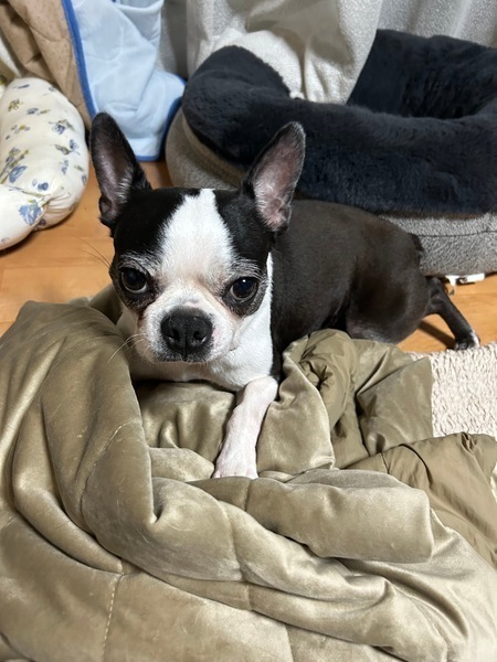 | 特徴(性格など) | 名前:バブルス 犬種:ボストンテリア 性別:メス♀ 毛色:黒白 年齢:6歳 体重:6.9キロくらい 性格: 人にも犬にもフレンドリー アピール激しめの元気な女の子です。 犬にはしつこいので嫌がる子もいます。 同居犬の顔をペロペロすることと人のひざの上に乗って眠る事が大好きです。 お散歩は練習中!リードを引っ張られると座り込むので、今はバブの好きなように歩かせています。 カートや車での移動は好きです。 おトイレはフカフカなところにはどこにでもしてしまうのでオムツが必要です。 ちょっとわがままなところも可愛い、赤ちゃんの様なバブちゃん 大切に可愛がって下さる里親さんを募集中です。 |