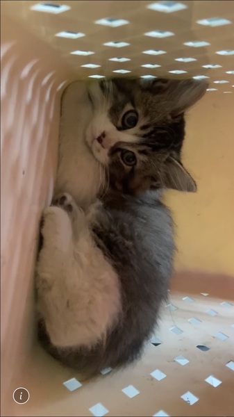 | 特徴(性格など) | 中〜長毛のグレー系で顔はトラ柄ですが背中の方は単色です。 とても大人しくおっとりしています。撫でられるのが大好きで、頭を撫でるとゴロゴロいいます。人の姿が見えなくなると不安で大きい声で鳴いています。トイレも問題なくできています。 |