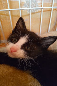| 特徴(性格など) | ●性格・特徴 ①白黒ハチワレ:一緒に保護した「キジ白」を守る兄猫。 少し臆病で、甘えるのが下手ですが、人間嫌いの様子は見られず、ご飯でもおもちゃでもすぐに近寄って来ます。 ②キジ白:一緒に保護した「ハチワレ」に守られている弟猫。 積極的で好奇心旺盛。おもちゃ遊びもかくれんぼも真っ先に始めました。 ●現在の健康状態:保護した翌朝にメス猫(避妊手術)と一緒に病院へ連れて行きました。 初見より「健康状態も良く綺麗な男の子」との事で、ノミダニの「ブロードライン」を投薬しました。 トイレのしつけ済。紙製砂でも木製砂でも使えます。 |