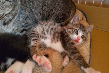 | 里親募集する理由 | ●保護した時の様子:数日前に避妊手術をする為に保護したメス猫の鳴き声に近寄ってきて、外で小さな声で鳴いていました。兄弟でカイヅカの茂みの中を逃げ回るので、チュールで誘って捕獲しました。 親子だと思い、見つけられて良かったと思っていましたが、後日先に保護したメス猫に出産経験がない事が判りました。 メス猫の乳房が張っていることや、現在も授乳していますので、姉妹猫の子として育てられていたのではないかと思われます。 子猫達は飼主さんを募集したいと思います。 |