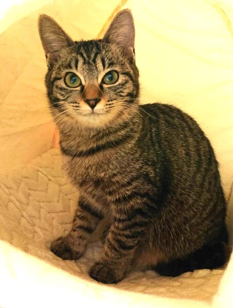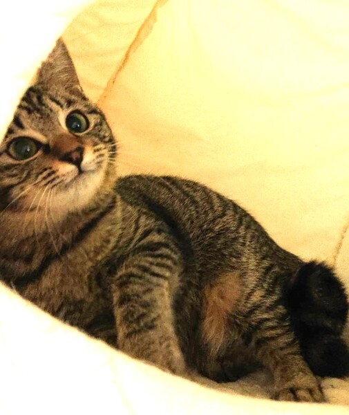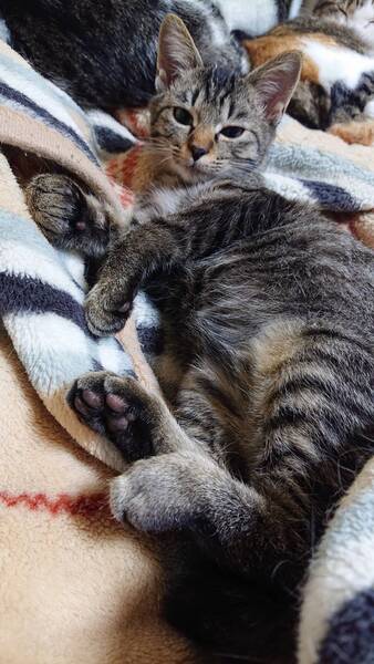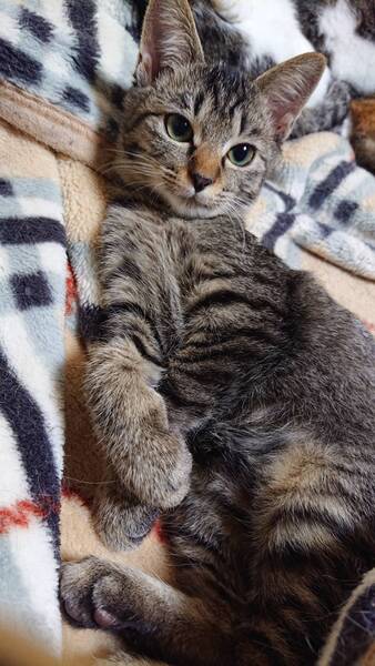 | 特徴(性格など) | 仮名: ひなちゃん(メス) 毛色: キジトラ 性格: とても活発な子で遊ぶ事が大好き。 人がすきなので、そばにいたくてまとわりついてきます。 音野猫にシャーされると可愛らしいやんのかステップで対応します。 留守番は出来ていますが、人が好きですし、出来るだけ留守番時間の長くない環境が希望です。 検便済 駆虫済 ワクチン接種済 猫エイズ・白血病ウィルス検査はともに陰性です |