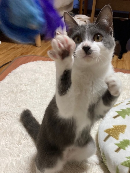 | 特徴(性格など) | ☆☆☆ご希望の方は、以下のアンケートフォームにご記入の上、送信してください☆☆☆ ねこ親希望アンケート→ http://chibawan.net/contactform_cat 【猫No】3753 【愛称】つむぎ 【性別】メス 【年齢】推定7ヶ月(2023年4月頃生) 【毛色】グレー白 【体重】2.1kg(23.11.11現在) 【状態】不妊手術済・ワクチン接種済・血液検査(エイズ・白血病ともに陰性)・マイクロチップ装着済・ノミダニ駆除済・トイレ躾済み 【預かり場所】千葉県我孫子市 【日記】 http://instagram.com/heiwa04 (インスタグラム) 【経緯】千葉県動物愛護センター東葛飾支所より引き出し 【性格】 遊ぶことが何より大好きなお転婆な女の子です。 少し慎重な面もありますが、適応力も高く、常に楽しいことを探している明るい性格です。 人慣れも問題ありません。特に人の手に興味があるようで、よく追いかけています。 ほかの猫に対しても積極的に遊びに誘うので、遊び好きな若猫がいるお家、もしくは姉妹のゆいちゃんと一緒のご縁を希望しております。 【補足事項】 現在首のリンパ節の腫れがあるのですが、熱もなく元気なので様子を見ている状況です。 【その他】 愛情いっぱいの終生飼養、ネコにあった生活スタイル、 完全室内飼育、 定期的なワクチン接種等の健康管理、脱走対策の徹底、アンケートに快くお答えしていただける方からのお問い合わせをお待ちしております。 |