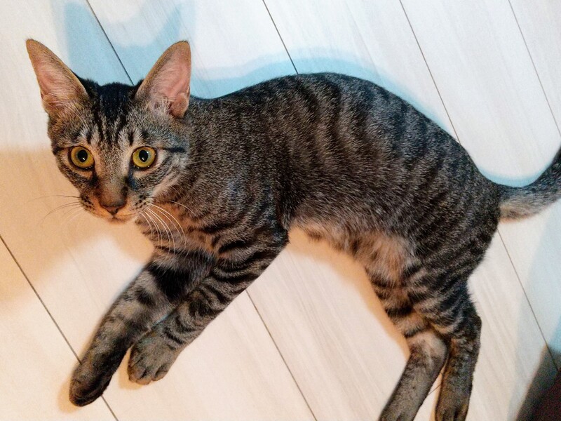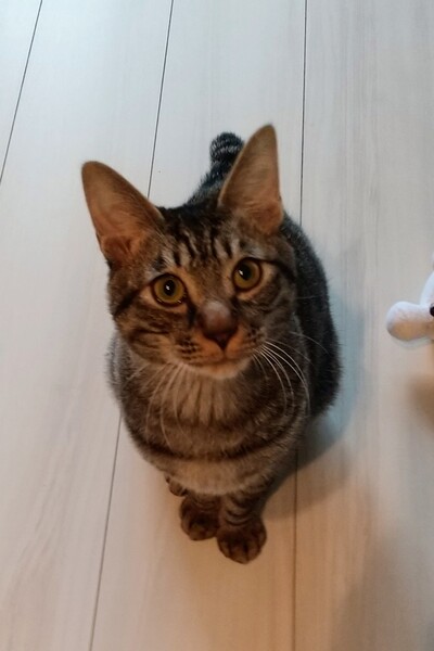 | 特徴(性格など) | 色濃いめキジトラです。体重4キロ 人馴れしていますが、ちょっとこわがりさんなので初めは警戒しますが、すぐに馴れると思います。 おしゃべりで、食いしん坊です。 何か投げるとダッシュで取りに行きます。 |