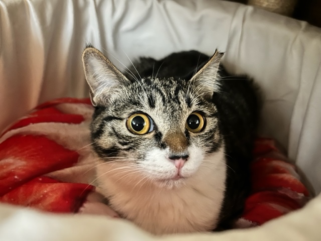 | 特徴(性格など) | 【仮名】アンディ 【性別】オス 【性格】シャイでおとなしめなアンディ。現在進行形で人なれ訓練中です。 11/8追記 ケージの中ではお腹をみせてゴロゴロ喉を鳴らして、尻尾をピーンとたてて嬉しそうにします。 まだ完全には気を許してくれないのですが、本来の性格は甘えっ子です。 ゆっくり、時間をかけて慣れてくれたらいい、アンディと一緒に暮らしてみたいと思ってくださる方を募集しています。 |
