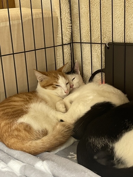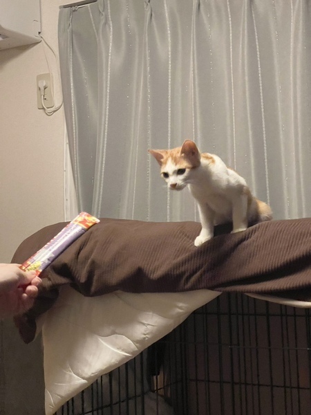 | 特徴(性格など) | 茶白のハチワレ柄(しっぽ短め) おだやかな性格で、好奇心旺盛な子です。 おやつやご飯が大好きでたくさん食べます! 噛み付いたり引っ掻いたりは一切しないです ※まだ人に寄ってくるほど人馴れしてないので、それでも大丈夫という方でお願いいたします |