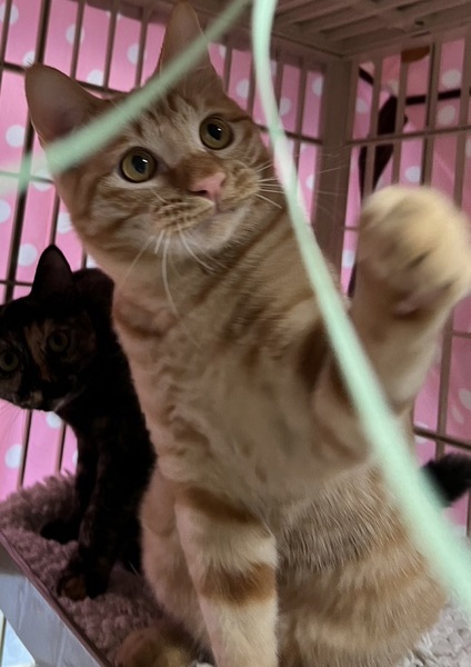 | 特徴(性格など) | 【保護先】 東京都板橋区 【仮名】 にゃん太 【性別/年齢】 オス / 5ヶ月(2023.6.6生まれ) 【毛色】 茶トラ。しっぽは長くてまっすぐ 【コメント】 活発。甘えん坊で抱っこ大好き。にゃんミーちゃんと兄妹 【仮名】 にゃんミー 【性別/年齢】 メス / 5ヶ月(2023.6.6生まれ) 【毛色】 トーティシェル(黒×茶)。しっぽは長くてまっすぐ 【コメント】 活発。甘えん坊で抱っこ大好き。にゃん太君と兄妹 ★2匹とも、健康チェック(検便・触診)済み、トイレしつけ済み、ノミダニ駆除済み、去勢・避妊手術済み、血液検査済み(猫エイズ・猫白血病ともに陰性) |