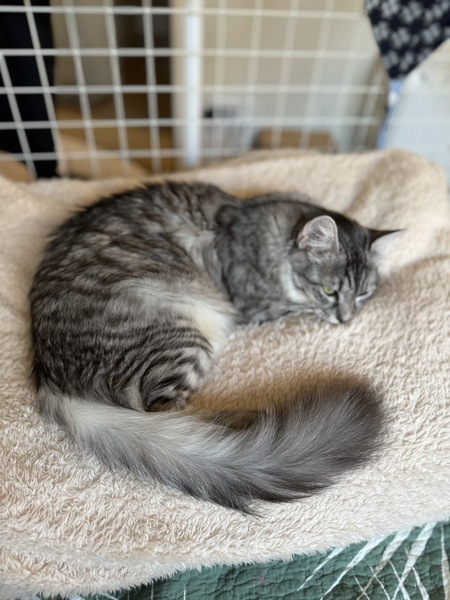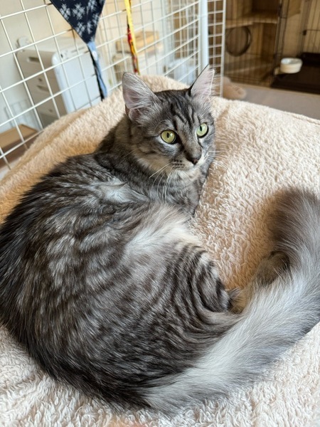 | 特徴(性格など) | ◆モモクロちゃん とっても懐っこい長毛サバトラ子猫 ○沖縄県内にて保護しました。 ○生後7ヶ月半くらい(2023年12月上旬時点)の長毛サバトラの女の子です。 ○艶々な毛質で手触りはウットリします。 ○シッポは長くてまっすぐです。 ○とっても懐っこい穏やかな子です。 ○性格は二重丸。 ○座ると飛んできて膝に乗り甘えてきます。 ○抱っこも好き。 ○とにかくかまって欲しい子なので、一匹でお迎えいただくか、甘えさせてくださる手が沢山あるご家族様希望です。 ○子猫には慕われ、先輩猫とは上手に距離が取れる賢い子です。 ○元気にすくすく育っています。 ★ワクチン2回済み、不妊手術済み。 ★猫エイズ、猫白血病ともに陰性。 ○YouTubeにも動画をあげています。こちらもご覧下さい。 「モモクロ」その1 https://youtu.be/juUmUcfKWdU 「モモクロ」その2 https://youtube.com/shorts/T2srEReTbYE ☆★☆★☆★☆★☆★☆★☆★☆★☆★☆★☆ ~12月17日(日)市が尾にて譲渡会開催!~ ◎場所・・「東急ドエル市ヶ尾プラーザビル2階集会場」 神奈川県横浜市青葉区市ヶ尾町1154-2 田園都市線「市が尾」駅西口より徒歩約2分 ◎日程・・12月17日(日)(雨天決行) ◎時間・・13時00分から16時00分(受付は15時30分まで) (会場に利用可能な駐車場はございません。近隣のコインパーキングをご利用ください。) *12:45よりも前の時間いお待ちいただくことはできません。 *混雑状況により、入場制限をさせていただく場合がございます。 ※参加予定の犬猫は体調により参加できない場合があります。ご了承ください。 ☆★☆★☆★☆★☆★☆★☆★☆★☆★☆★☆ |
