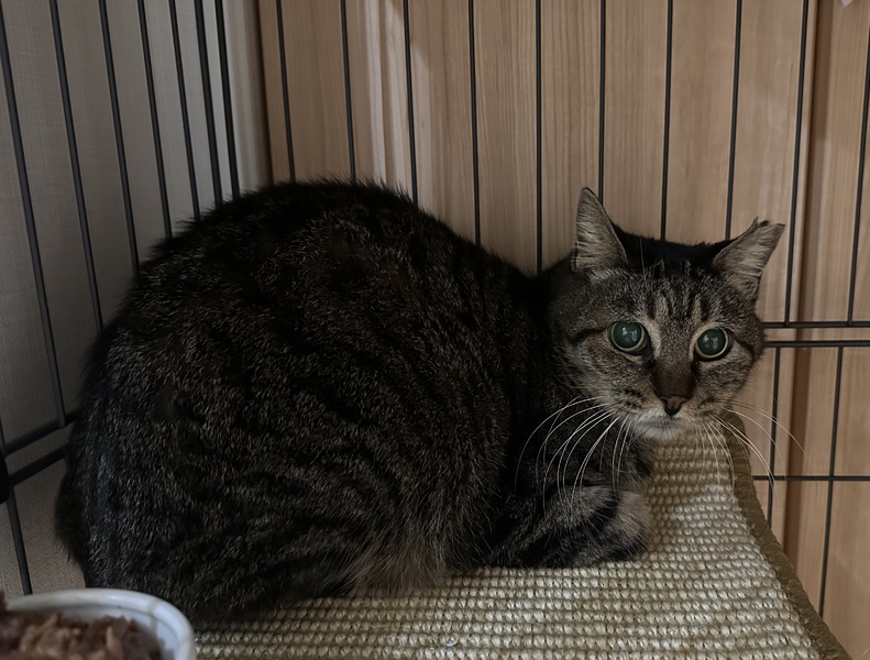 | 特徴(性格など) | 3.2キロのキジトラの女の子です。 長らく地域猫として過ごしていたようです。 (最初に見かけたときにはもうサクラネコでした) 知らない人間、知らない猫には警戒心むき出しですので 人馴れしていない猫ちゃんに慣れている方じゃないと難しいかもです。 |