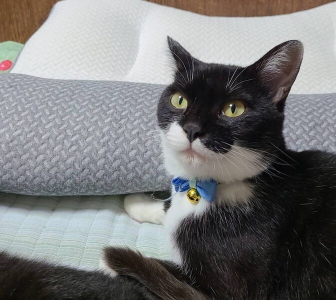 | 特徴(性格など) | 白黒仮面、とっても可愛らしい顔のふくです。 とても甘えん坊で、他の猫とも仲良くできます。 |