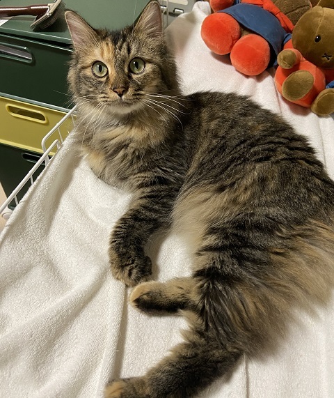 | 特徴(性格など) | ☆☆☆ご希望の方は、以下のアンケートフォームにご記入の上、送信してください☆☆☆ ねこ親希望アンケート→ http://chibawan.net/contactform_cat 【猫No】 3754 【愛称】 みかんちゃん 【性別】 メス 【年齢】 推定2歳(23/11/20現在)(21/4月頃生) 【毛色】 キジ三毛(長毛) 【体重】 4kg(23/11/20現在) 【状態】 不妊手術済、ワクチン1回済(23/07/04)、血液検査(猫エイズ陰性・白血病陽性)、ノミダニ駆除済、マイクロチップ装着済、駆虫済、トイレ躾済 【預かり場所】 千葉県四街道市 【日記】 https://www.instagram.com/lovemiffy0709/ 【経緯】 千葉県動物愛護センターより引き出し 【性格】 ふわふわでゴージャスな長毛にグリーンの瞳。とにかく人間が大好きで甘えんぼうの、とても愛らしい「みかん」です。 初めてのときは少しだけ緊張しますが、一時間も経たないうちに打ち解けてくれます。 目が合っただけで盛大にゴロゴロ、「撫でて~♪」とお腹を見せてコロンコロンと転がります。 遊んで欲しくて駆け寄ってきて、顔や手をペロペロ舐める様は、人懐こい子犬のようでもあります。 推定2歳とのことですが、無邪気な様子を見るに、もう少し若いかもしれません。 他猫に対しては、程々の距離感を保っており、追いかけたり喧嘩を仕掛けたりはしません。 センターに収容された際には、立てないくらいにガリガリに痩せ細っていたそうですが、御飯をモリモリ食べて、まん丸な可愛い子ちゃんになりました。 経緯は不明ですが、毛をカットした跡があったので飼われていた子だと思われます。 フードの好き嫌いなく、爪切りも簡単で、お留守番中のイタズラや粗相もゼロ。本当に可愛くて良い子です。 みかんと一緒の暮らしは、最高に楽しく幸せな猫ライフになると思います^^ 【補足】 FeLV(猫白血病)キャリアですが発症はしておらず、健康そのものです。 自らの免疫がウイルスを押え込み、発症せずに天寿を全うする子も珍しくありません。 そして、免疫力を高める一番良い方法は「快適なおうち」「美味しい食事」「たっぷりの愛情」。 可愛い「みかん」を家族に迎えてくださる方を、心よりお待ちしております。 【その他】 愛情いっぱいの終生飼養、ネコにあった生活スタイル、 完全室内飼育、 定期的なワクチン接種等の健康管理、脱走対策の徹底、アンケートに快くお答えしていただける方で、保護主宅から電車または車で約1時間半以内の場所にお住まいの方からのお問い合わせをお待ちしております。 お一人暮らしの方、60歳以上のご家庭からのお申込みも歓迎いたします(保証人が必要な場合もございます) |