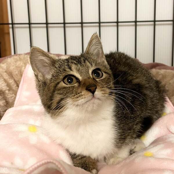 | 里親募集する理由 | とあるお家の庭に突然現れたとのことです。付近に親らしい猫が見当たらないので保護しました。 | ||