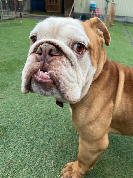 | 特徴(性格など) | ブルドッグ 男の子 年齢4歳 体重21キロ 生まれてからずっと外飼いをされていた為、フィラリア陽性です。 月に一回の投薬が必要になります。 チェリーアイがあります。 とっても人懐っこい性格で、人が大好きです。 痩せすぎの為、しっかり、栄養をとっています。 |