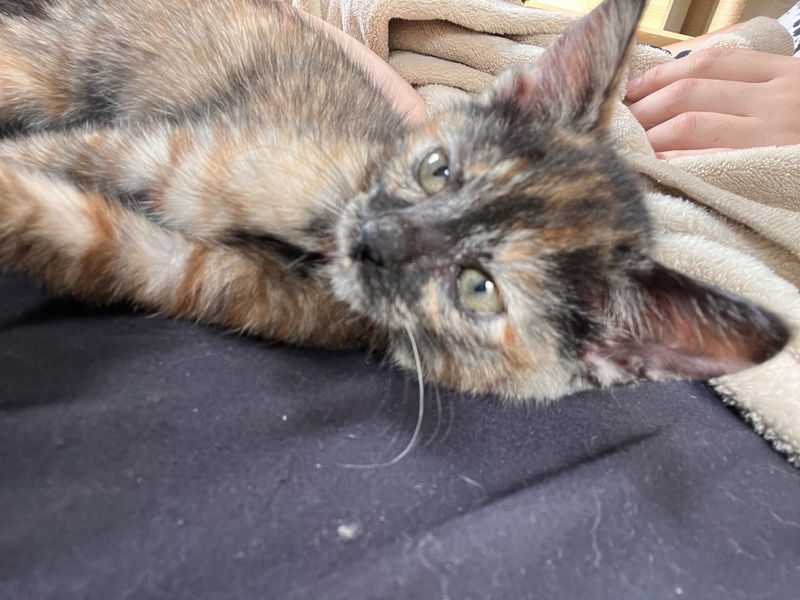 | 特徴(性格など) | サビ柄です! 性格はとてもやんちゃで寂しがり屋な面もあります。 ケージに入れると出して出してとずっと泣いてます。 家にいると必ず近くでねてくれますし 慣れてくるとやんちゃになってきます! 家に来た時2、3週間はトイレの失敗が多かったので、そこの理解ができる方応募お願いします。 |