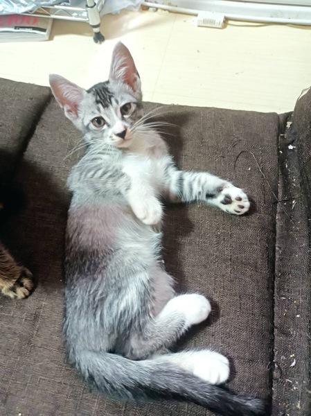 | 特徴(性格など) | ・クロ 元気で食欲も旺盛 他の猫と比べて尻尾が長い ・シロ こちらもすごく元気で甘えん坊 手足が白く、手袋と長靴を履いているように見えます 2匹とも健康状態は良好です。 ワクチンは接種済み エイズと白血病の検査はこれから行います。 |