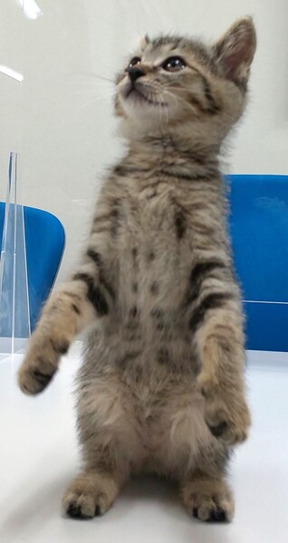 | 特徴(性格など) | キジトラ まだ2ヶ月ですが、しょっちゅうへそ天で寝ています。 ちょっとおっちょこちょいですが、人懐っこくわんぱくです。 |