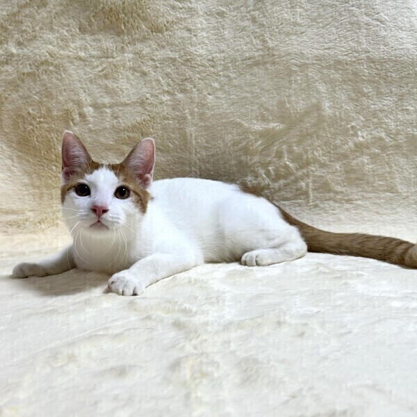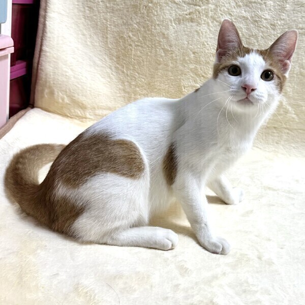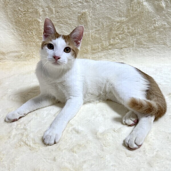 | 特徴(性格など) | 【仮名】ねんねくん 【性格】シャイだけど元気いっぱい遊ぶの大好きなねんねくん☆ 甘えん坊で撫でられるのも大好き! コロンと横たわり大きなゴロゴロ音を聞かせてくれます♪ ちょっとドジで天然系で大人になっても幼い雰囲気で成長しそうです(笑) 猫が好きなので甘えさせてくれる子や一緒に遊べる子がいると良いと思います。 チャームポイントはビシッとキマった真ん中分けの前髪です♪ ※1ピキ譲渡可(先住アリ) |