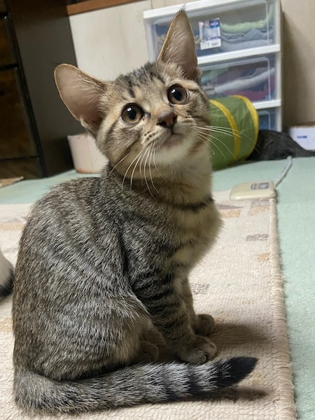 | 特徴(性格など) | ☆☆☆ご希望の方は、以下のアンケートフォームにご記入の上、送信してください☆☆☆ ねこ親希望アンケート→ http://chibawan.net/contactform_cat 【猫No】3756 【愛称】かっぺりーに 【性別】オス 【年齢】推定3ヶ月(23/08/15頃生) 【毛色】キジトラ 【体重】1.2㎏(23/11/20現在) 【状態】去勢手術済、マイクロチップ装着済、ワクチン済(23/11/20)、血液(ウイルス)検査済(猫エイズ・猫白血病共に陰性)、ノミ・ダニ駆除済、検便駆虫済、トイレ躾済 【預かり場所】神奈川県川崎市 【日記】renhana7(インスタグラム) https://www.instagram.com/renhana7 【経緯】柏市動物愛護ふれあいセンターより引き取り 【性格】好奇心旺盛でころころと興味の先が移ります。おもちゃで遊ぶのも好き、兄妹猫と遊ぶのも好き、食事の途中で遊びだしてしまうこともあります。ベタベタの甘えん坊ではありませんが、気が付くと人の隣で遊んでいたりします。 食事は1日3回に分けてドライフードにウェットフードを混ぜたものを食べています。 【補足事項】まだまだスキンシップが必要な時期ですので、お留守番の時間は短く、また、兄妹猫と一緒に迎えていただくか先住猫のいるご家庭を希望します。 【その他】愛情いっぱいの終生飼養、猫にあった生活スタイル、完全室内飼育、定期的なワクチン接種などの健康管理をお約束いただけ、迷子防止に細心の注意を払ってくださる、関東近県のご家庭でアンケートに快くお答えいただける方からのお問い合わせをお待ちしています。 なお大変申し訳ありませんが、主にお世話してくださる方がご高齢の方のご家庭である場合のお申し込みにつきましてはお断りさせていただきますので予めご了承ください。 |