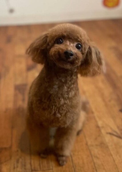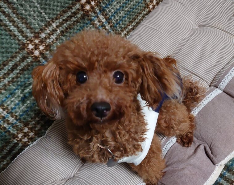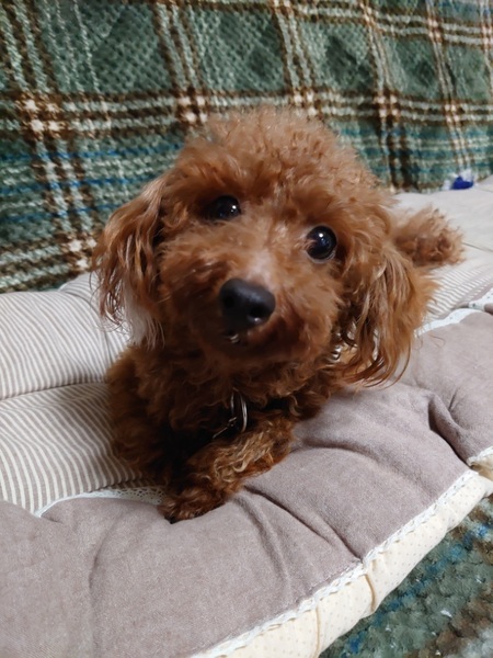| 特徴(性格など) | トイプードルの女の子きらりちゃんです! 4歳です。 被毛の色はレッド、3,2キロです。 くりっくりお目目のとってもかわいいお顔をしています。 実物のほうが100倍は可愛いです^^ かなりのかわいこちゃんです^^ 基本、怖がりなので、なれるまで驚いて急に跳ねたり飛び出したりに注意が必要です。 ですが~ わんこが大好きで、積極的に遊びに誘います。 先住犬がいる場合は、同じタイプだと延々コロコロ♪楽しいと思います。 グイグイいくので、あまり対格差がないほうがいいかなと思います。 ぺろぺろ星人の甘えん坊、おトイレもまだまだ修行中(ケージの中ではカンペキ!です)ですので、お留守番の短いお家を探しています。 まだまだ伸びしろいっぱーいです。 保護してすぐ、怖がりが高じて物音に驚き家具に、まぶた、眼球が激突してしまいました。 すぐに専門医に走りましたが、打ちどころが悪く、一撃で右目を失明してしまいました。(網膜が落ちてしまっている状態で、外傷性ということもあり手術対応にもなりませんでした) 数回の専門医通院検査目薬で、炎症もなくなり安定しました(心配していました眼球萎縮は免れました) 右目は見えなくなりましたが、見た目は変わらないし、生活に支障もありません。 元気に、跳んで走っています。 ※保護してすぐに投稿しましたが、身体状況も見た目(産後でガリガリで被毛も薄かったです)もかなり変わりましたので載せなおしています。 |