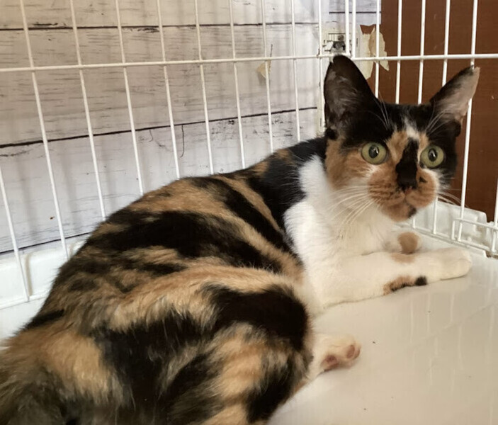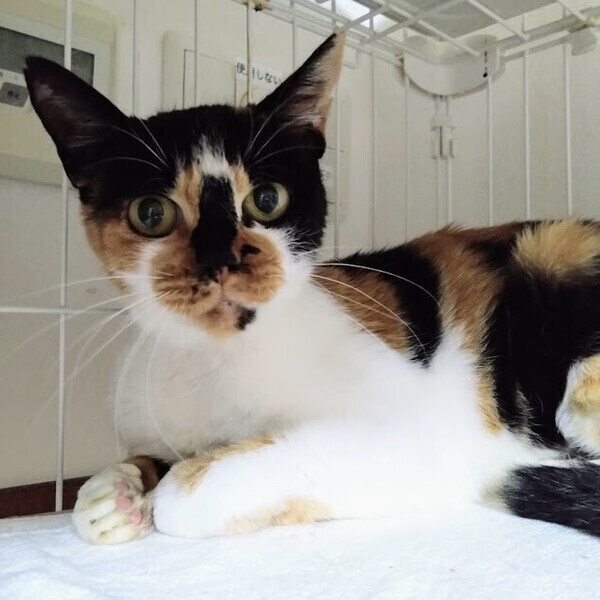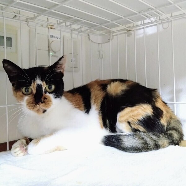 | 特徴(性格など) | ◆ランガちゃん まだ人馴れ訓練中のビビッド三毛女子 ○神奈川県相模原市内にて保護しました。 ○推定2歳未満くらい(2023年11月時点)のビビッドな三毛柄の女の子です。鼻の上の黒斑と口周りの茶斑がチャームポイントです。 ○尻尾は長くて先の曲がった鍵しっぽです。 ○まだ人が怖いようです。少しなら触れもしますが、まだやっぱりシャーと言われたり、パンチされます。 ○ゆっくり距離を縮めて頂けると幸いです。 ○同じく里親募集中の「ムトゥ」のお母さんです。 ★ワクチン接種済み。不妊手術済み。 ★猫エイズ、猫白血病ともに陰性。 ☆単身のかたはご相談ください。 ★★お見合いを設定することも可能です。まずはお申込みください★★ |