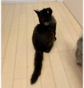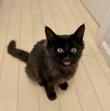 | 特徴(性格など) | 仮名:チョコ太(男の子、2023.7月生まれ?4か月くらい) 長毛の黒猫さんですが、顔回りの毛は褐色で、ちょっと変わった雰囲気の猫さんです。 保護時はあまり人に慣れていませんでしたが、数日お世話をしていたら、甘えんぼになりました。 くいしんぼで遊び好きで、猫付き合いも上手。 ★子猫なので活発でやんちゃな時期です。一緒に遊べる猫さんがいた方がよさそう。 ★玄関等の脱走対策をお願いしています。 猫の健康状況 ・ウィルスチェック済(エイズ・白血病、どちらも陰性) ・ワクチン接種済。 ・体内外駆虫済(ブロードライン、プロコックス、各2回実施予定) ・保護時に消化不良と風邪症状がありました。 小さな体と相談しながら、負担をかけないように、適宜で医療にかけています。 ★食欲あります。排泄も今は良好。元気いっぱいで遊んでいます。 |