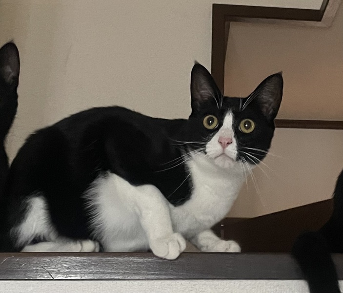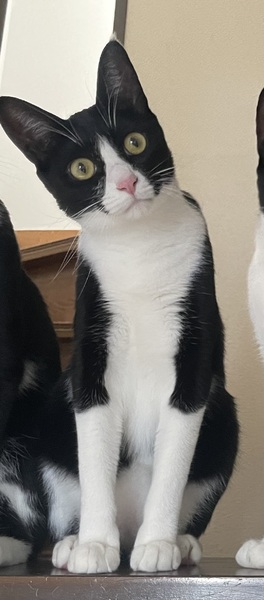 | 特徴(性格など) | 白黒のハチワレ猫ちゃんです。 なくことも暴れ倒す事もないお利口さん。 人が大好きで、夜はお布団で一緒に寝たがるほど。 |