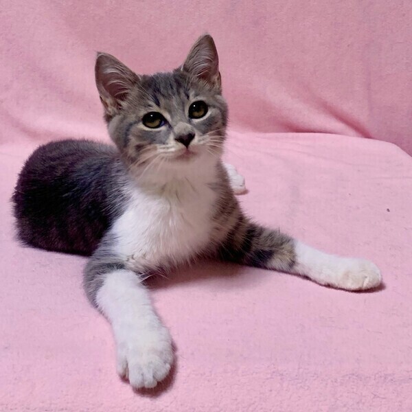 | 特徴(性格など) | 【仮名】ライトくん 【性格】ちょっと困り顔なのが可愛いライトくん☆ グレーキジシロの毛並みはナデ心地サイコー! 兄妹のライムちゃんとは真逆のおとなし~い男の子です。 人に甘えるのが大好きで目が合うと ゴロゴロ言いながらスーっとよってきます♪ ナデナデすると手をお膝にのせて 「もっとなでて~♡」と顔を近づけてきてくれます♪ 控えめで濃ゆい甘え方がとっても可愛いですョ! ライムちゃんのオモチャ遊びがあまりにも激しいので ライトくんは一歩ひいて見てます(笑) 2人の性格が正反対なので見ていると面白いですョ♪ まだまだ色々学習中なので兄妹や同世代の子との お迎えを希望します。 ※1ピキ譲渡不可 |
