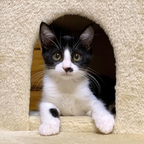 | 特徴(性格など) | 【仮名】エースくん 【性格】シンメトリーハチワレのエースくん♪ コレぞ黒白ハチワレ!なルックスで ハチワレ界のNo.1を目指します! 抱っこもナデナデもまだまだだけど 諦めは早い性格のようで(笑) おヒザに乗せるとそのまんまです♪ でも最近おもちゃ遊びには 食いつくようになってきたので いっぱい遊んであげればイチコロでしょう♪ まだまだ色々学習中なので兄妹や 同世代のコとのお迎えを希望します♪ ※1ピキ譲渡応相談(先住アリ) |