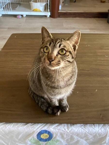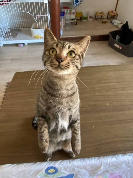 | 特徴(性格など) | まん丸お目めにぷくっとしたひげ袋が何とも愛らしい、小柄な美猫ちゃん。 仮の名を「すずめ」と名付けています。 シェルターに来た当初は警戒心強めで縮こまっていましたが、環境に慣れてくると徐々に本来の甘えたぶりを発揮してくれるようになりました。 今では声をかけると寄ってきてゴロゴロスリスリ♪ お腹を見せて「もっと撫でて〜」とおねだりしてきます^^ こんな可愛いすずめちゃんを 可愛い子猫のうちに どうかご家族の一員として迎えてあげてください。 ご連絡お待ちしております。 兄妹のひばり(サイト同載中)とは大の仲良しでいつも一緒です。 ひばりはちょっとだけ怖がりですが穏やかなキジトラ男のコです。 ◆食事:カリカリ食べれます。偏食なし ◆排泄:トイレ排泄完璧 ◆性格:明るい、温厚、甘えた ◆あそび:追いかけたり捕まえたりする遊びが特に好きです。 ◆留守番:兄妹と一緒なら長時間のお留守も可能です(9時間以内) ◆夜間の様子:静かにぐっすり眠っています ◆その他: *子どもがいるご家族:中学生以上可(子猫をおもちゃ代わりにするようなご年齢のお子様は不可) *完全室内飼い・室内フリーでお願いいたします。 ※2〜3段ケージのご準備は必須でお願いいたします。 【子猫から飼うならぜひ兄妹飼いをオススメします!】 ♡子猫同士で遊びを通じながら社会性を身につけることができます。 ♡遊び相手が居るのでお留守番も上手にできるようになります。 ♡仲睦まじい猫たちの姿に飼主さんも癒され倍増!幸せホルモンに包まれます♪ 猫の多頭飼いは思うほど大変ではありません。 子猫からお迎えするなら、ぜひ多頭飼いもご検討ください^ ^ ♡毎週末•祝日に譲渡会(Enn結び会)を行っておりますので、ご応募に迷っておられる方は ぜひ一度実際のすずめちゃんに会いに来てやってください。 ♡日々の様子はインスタグラム@enn1105にもアップしております |