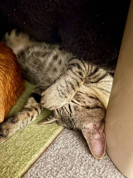 | 特徴(性格など) | スッキリした顎にピンとした立ち耳の 細マッチョなイケメンくん。 仮の名を「ひばり」と名付けています。 シェルターに来た当初は緊張で固まっていましたが、環境に慣れてくると徐々に伸び伸び遊んでくれるようになりました。 普段は呼んでも寄ってくる事は余りありませんが、ご飯の時とおもちゃを出した時はゴロゴロと喉を鳴らして擦り寄ってきます。 撫でると気持ち良さそうにお腹を出してそのまま寝てしまうことも。。とっても可愛いです^.^ こんな可愛いひばりくんを 可愛い子猫のうちに どうかご家族の一員として迎えてあげてください。 ご連絡お待ちしております。 兄妹のすずめ(サイト同載中)とは大の仲良しでいつも一緒です。 すずめは友好的で甘えたなキジトラ女のコです。 ◆食事:カリカリ食べれます。偏食なし ◆排泄:トイレ排泄完璧 ◆性格:ちょっとだけ怖がり、穏やか、優しい ◆あそび:ジャンプして追いかける遊びが特に好きです。 ◆留守番:兄妹と一緒なら長時間のお留守も可能です(9時間以内) ◆夜間の様子:静かにぐっすり眠っています ◆その他: *子どもがいるご家族:中学生以上可(子猫をおもちゃ代わりにするようなご年齢のお子様は不可) *完全室内飼い・室内フリーでお願いいたします。 ※2〜3段ケージのご準備は必須でお願いいたします。 【子猫から飼うならぜひ兄妹飼いをオススメします!】 ♡子猫同士で遊びを通じながら社会性を身につけることができます。 ♡遊び相手が居るのでお留守番も上手にできるようになります。 ♡仲睦まじい猫たちの姿に飼主さんも癒され倍増!幸せホルモンに包まれます♪ 猫の多頭飼いは思うほど大変ではありません。 子猫からお迎えするなら、ぜひ多頭飼いもご検討ください^ ^ ♡毎週末•祝日に譲渡会(Enn結び会)を行っておりますので、ご応募に迷っておられる方は ぜひ一度実際のひばりくんに会いに来てやってください。 ♡日々の様子はインスタグラム@enn1105にもアップしております 【健康状態】 感染症なし 他健康状態良好 |