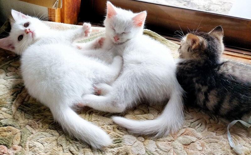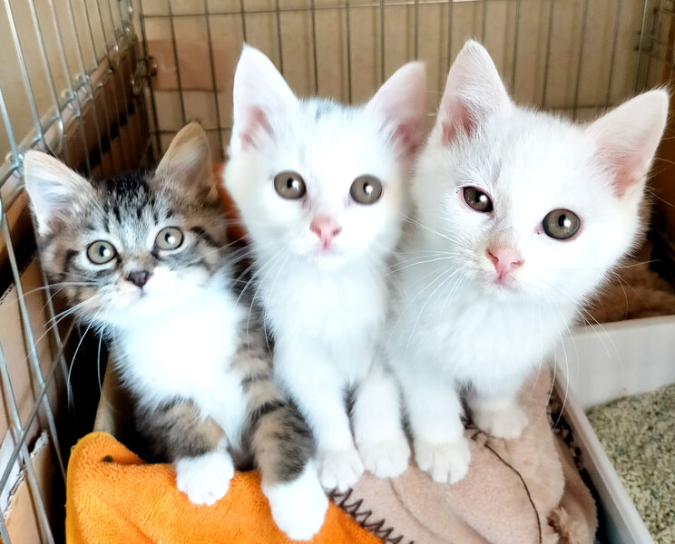 | 特徴(性格など) | 白(オス)…人懐っこく好奇心旺盛。犬や他の猫たちにもすぐに慣れた。 ロングしっぽ。 白(メス)…人間と犬にはビビりちゃんで猫がダイスキ。わんぱくガール。 ほぼ白猫だけど頭のてっぺんにすこし黒い模様有。 白(オス)よりしっぽはちょっと短めで太い。 キジ白(メス)…人間と犬にはビビりちゃんで猫がダイスキ。 爪とぎタワーのてっぺんに上るのをこよなく愛す元気ガール。 シッポは短い鍵しっぽ。お尻にポンポンついてます。 ご飯ももりもり、トイレももりもり。夜は大運動会。超元気です。 ●ウイルス検査(エイズ・白血病 陰性) ●蚤取り 1回 ●駆虫 2回 ●検便 1回 |