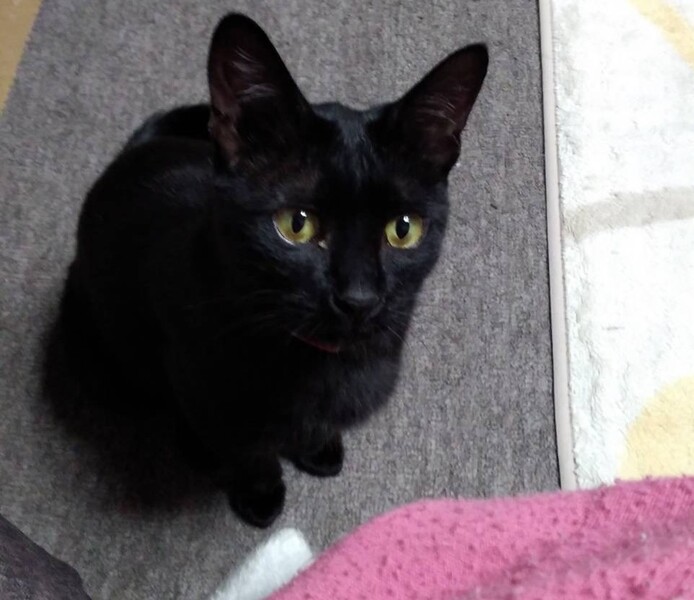 | 特徴(性格など) | 知人が保護してお宅で預かっていただいています。 黒猫の女の子でだいたい4-5か月くらいの大きさです。 しっぽは長く活発で、最近チュールを覚えました。 保護主さんにはベタ甘ちゃんです。野良でしたので保護された方以外には警戒心が強いですが、まだ子供ですので慣れやすいと思います。目の色は黄色ですらっとして綺麗な子です。 鳴き声もかわいいです。 |