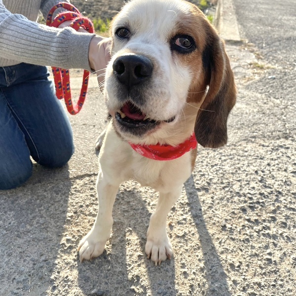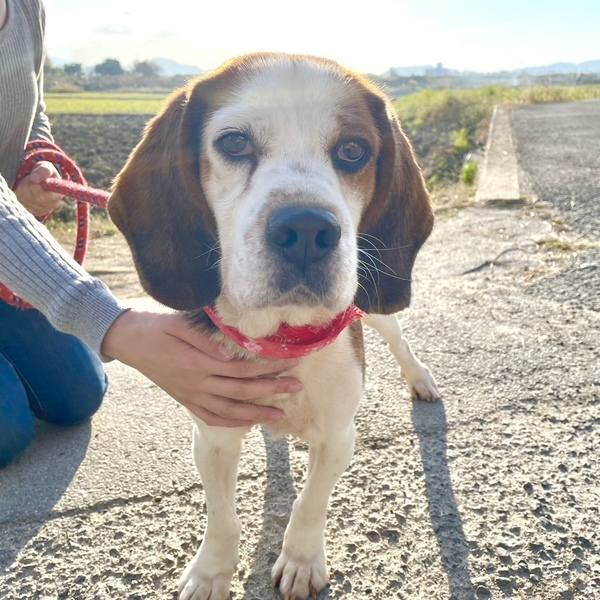 | 特徴(性格など) | ビーグルの仁くん、15kg。 甘えん坊で優しい性格です。 牛柄のように白が多い背中がチャームポイント。 元猟犬ですが、要求がある時以外はほとんど吠えません。 お散歩大好き、人も大好き! なでるとすぐお腹を出し、甘えてくる人たらし。 健康的な体型で、他の犬にもあいさつでき友好的です。 これまで人のためにがんばってきた仁くんを、家族として迎えてくださる方を探しています。 少しでも気になられましたら、お気軽にご連絡くださいね。 ●より迅速に対応させていただくため、差し支えなければ最初のご連絡で、 「お電話番号と大体のご住所」をお書き添えください。 ●シニア世代の方でもご応募可能です。 |