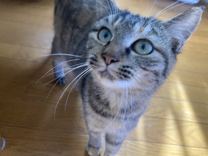 | 特徴(性格など) | サビ猫ちゃんが産んだので、サビ柄とシマが混ざっています。 とても元気で食いしん坊で、抱っこは出来ます。 先住猫にもグイグイきますので、先住猫がいても大丈夫だと思います。 |