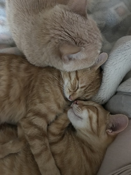 | 特徴(性格など) | ◆性格や特徴 生後11ヶ月の茶トラの男の子と女の子 2匹とも運動神経抜群です。 男の子は甘えん坊です。 女の子は慣れてはいますが、保護時の恐怖から抱かれるのは嫌がります。でも夜は横で寝ていますので慣れています。 1匹ずつでも良いのですが、仲良しですので2匹一緒の方を希望します。 ◆健康状態 健康状態は良好です |