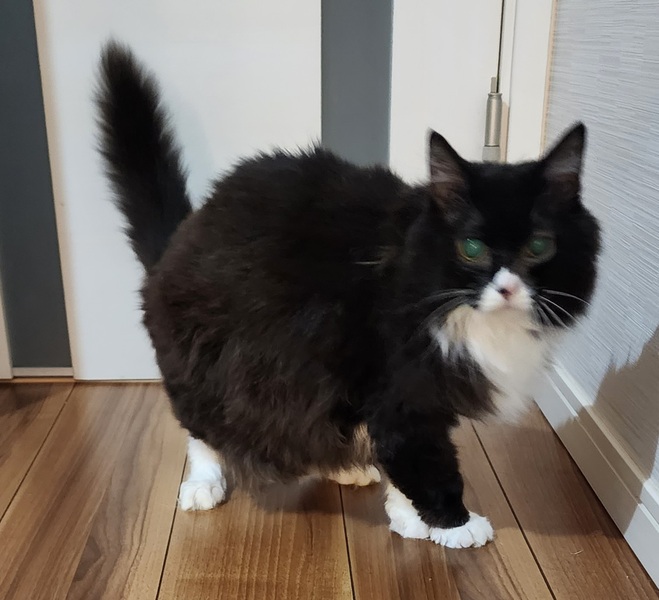 | 特徴(性格など) | 高齢ですが、とっても元気でドライフードでも何でも食べる食用旺盛な猫です。 すごく甘えん坊です。 ちょっとポッチャリしているので、キッチンなど乗ったりしません。 掃除機も怖がらないマイペースなこです。 座ってる後ろ姿はトトロみたいです。 とっても健康です。 |