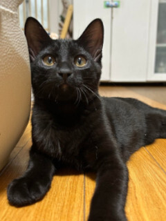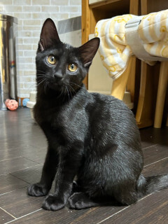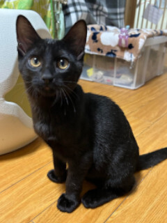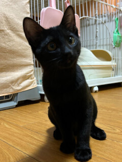 | 特徴(性格など) | ☆★☆★現在お見合い予定がございます☆★☆★ 仮名を「ロミオ」と言います。 黒の男の仔です。 センター収容です。 尻尾はすらっと長く真っ直ぐで、艶々の黒毛がチャームポイント♪ 兄妹やおとな猫たちと暮らす中で、猫社会も学んできました。 先住猫ちゃんの居るお家や、兄妹の「シェリー」とペアでのお迎え大歓迎です。 遊ぶ時ははっちゃけて遊ぶ…! おやすみなさいの時間なったら諦めて寝る….! (もう少し大きくなるまでは、就寝時はケージも活用しています。) 猫と初めて一緒に暮らす方でも、お迎えしやすいのではないかな。と思います。 抱っこをするとゴロゴロ…ゴロゴロ….嬉しいよ。を伝えてくれます。 ジャラシが大好き♡ ご家族の愛情独占のひとりっ仔となるのであれば、時間にもゆとりがあって、たくさん遊んでもらえるご家庭でしたらロミオも退屈しないでしょう。 人見知りもほとんどありません。 愛らしいロミオに会いに来てくださいね。 |