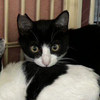 | 里親募集する理由 | 野良母さんの避妊が間に合わず生まれました。 白黒ハチワレ兄弟(もん、とん)の里親を募集します。 |