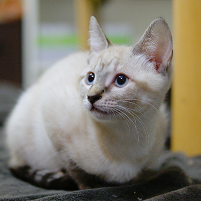 | 特徴(性格など) | お話上手な美人さん お膝して~ 抱っこして~ の合図はゴロゴロニャ~です。 お布団で一緒に寝ます シャム系ミックスの美猫さんです |