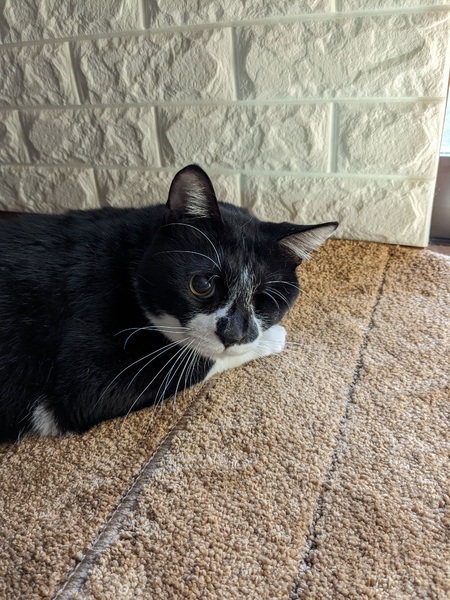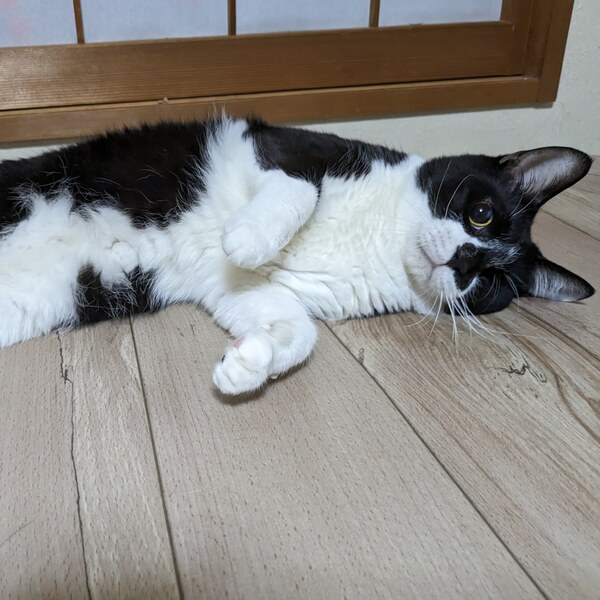 | 特徴(性格など) | 黒白ハチワレ 少し長毛タイプです。 大人しくて良い子です! 左目がなくて右目も悪いです。 トイレ完璧で全く手がかかりません。 今年の2月ころ交通事故で顔面負傷してセンターに収容されていました。 左目が重症で摘出手術をしています。 右目も、角膜損傷していて うっすり見えている程度ですが 日常生活は、普通におトイレにいったり、他の猫たちと仲良くできています。 上顎裂傷、下顎も骨折していたため ワイヤー入れる手術をしています。 1ヶ月間、食べれなくて鼻からカテーテルで、強制給餌でした。 ガリガリに痩せていて食欲もなくて 点滴も通いました。 辛そうで、本当に良く耐えていました。 今年の4月に、ワイヤーを外して 顎は、完治しています。 普通にカリカリも食べれるようになりました。 人慣れしていますが 目が悪いので、最初だけ 人見知りになります。 慣れてからは、甘えん坊さんで 抱っこしてると ゴロゴロしながら寝てしまいます。 穏やかで控え目な性格なので 自分のお皿のご飯を横から他の猫が 食べてしまう子がいると 譲ってしまい食べるのをやめます。 新しく来た仔猫たちにも、優しく接してくれています。 |