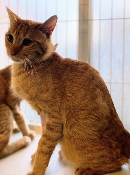 | 特徴(性格など) | 兄弟の中では、いちばん怖がりなタイプだと思います。捕獲時は元気いっぱいの様子だったということですので、馴れてきたら活動的な子ではないかと思います。 今は兄弟猫の後ろに隠れていることが多いです。 |