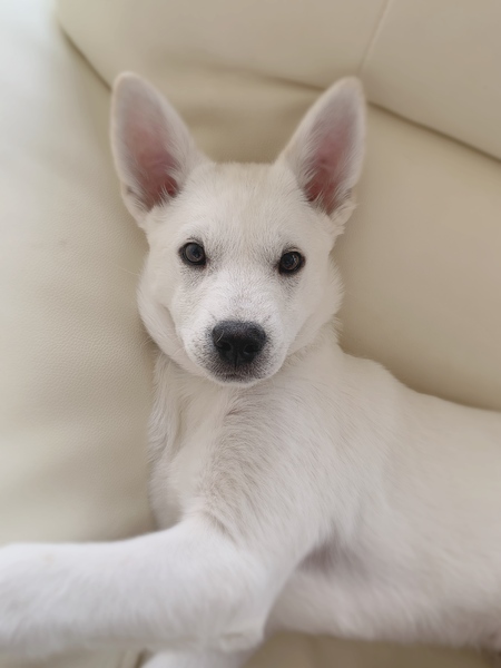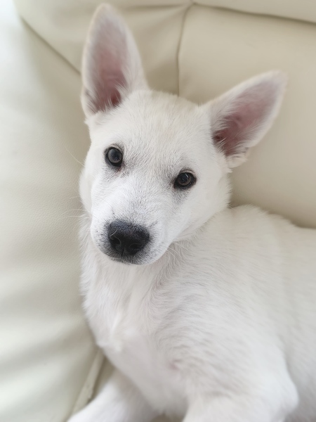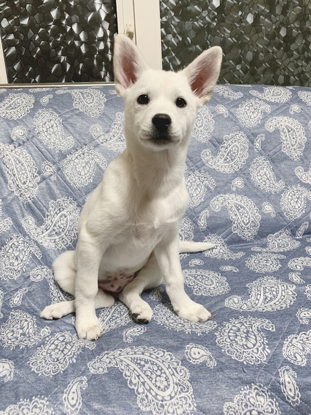 | 特徴(性格など) | 【名前】メンメ 【生年月日】推定2023.10月上旬〜中旬頃生まれ 【種類】MIX(成犬時10〜15kgくらいになると思います) 【毛色】ホワイト 【性別】オス 【去勢】未(適齢になり次第,飼い主様で必ずお願いします) 【ワクチン】1回目、2回目済 【駆虫】済 【健康状態】良好です。 【性格】ものすごく甘えん坊!人大好き!犬大好き!いつも明るく元気いっぱい!人が好き過ぎて、気配を感じるとハウスから見てます。ストーカーしてきます。人が歩くて脚を噛んで動きを止めにきます。 【トイレ】ほぼ問題ありませんが時々はみ出ます。 【ケージ】お留守番、就寝時、お昼寝などはケージで過ごしています。 【兄弟】ばる♂ |