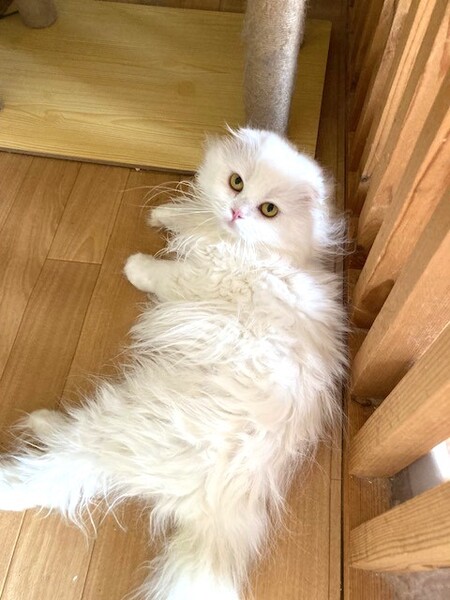 | 特徴(性格など) | 真っ白もふもふの毛並の男の子☆ しっかりと折れた小さなお耳です。 ゴロゴロすりすり 撫ででもらうのが大好きです♡ お目目に目やにがでるのと時々うんちが緩いときがありますが、虫とかいなかったです。 鼻が少し上がっていて小さいので、ブシブシいうことがあります。 |