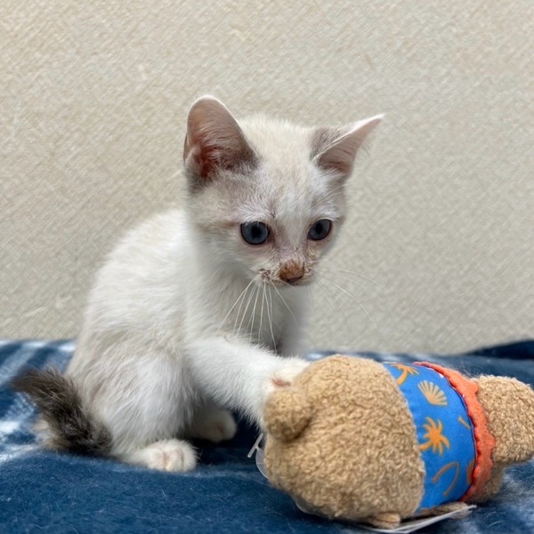 | 特徴(性格など) | 青い瞳がとても美しいハンサムな男の子です。4兄妹の中で一番小柄ですが、ふみくんのペースで大きくなっています。ご飯もよく食べ元気一杯で、なかなか活発です(笑)さちちゃん、ちこちゃん、たかくんととても仲良しな4兄妹です。いつもみんなで遊んで一緒に眠っています。兄妹一緒のご縁があると嬉しいです。これからますます個性が出てくると思うので、どんな子になるかとても楽しみです。 募集写真のお顔がちょっと汚れているのは、ご飯の食べ方と少し風邪をひいていたので目薬等の影響ですので、これからぴかぴか綺麗になる予定です(笑) 健康管理をしっかりしてくださる方、また安全に暮らせる様にお部屋のお片付け、目に見える形での脱走防止対策を徹底してくださる方とご縁がつながると嬉しいです。対策等でわからないことは アドバイスさせていただきますので、疑問点などは遠慮なく聞いていただきたいです。 ご自宅の玄関・開ける窓・ケージを置くお部屋などのお写真をご持参いただきますと、より具体的なお話ができると思います。 |