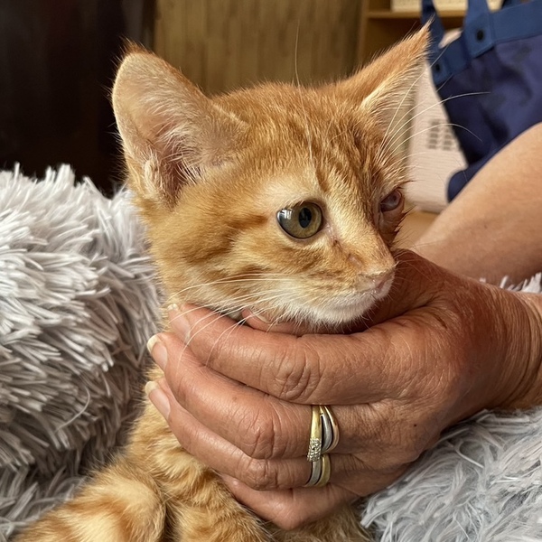| 特徴(性格など) | 茶トラの子猫、しょうぞうくんです。 10月初旬に6匹きょうだいで保護されました。 保護したときから左目が閉じており、点眼治療中です。それ以外は元気に過ごしています。 かわいいしょうぞうくんに、すてきなご縁がありますように! 少しでも気になられましたら、お気軽にご連絡くださいね。 ●より迅速に対応させていただくため、差し支えなければ最初のご連絡で、 「お電話番号と大体のご住所」をお書き添えください。 ●シニア世代の方でもご応募可能です。 |